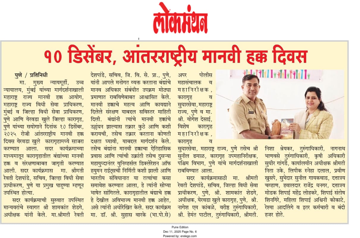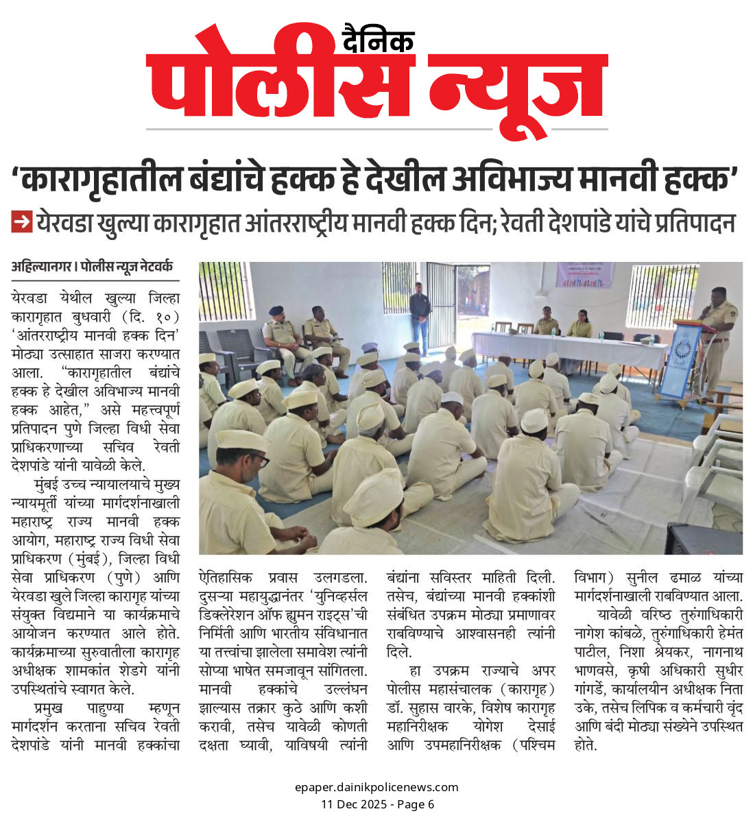 Celebration of International Human Rights Day at Yerwada Central Prison on 10 December 2025 in the Presence of Shri Vishwas Pandhare, Superintendent of Police, Maharashtra State Human Rights Commission, Mumbai
